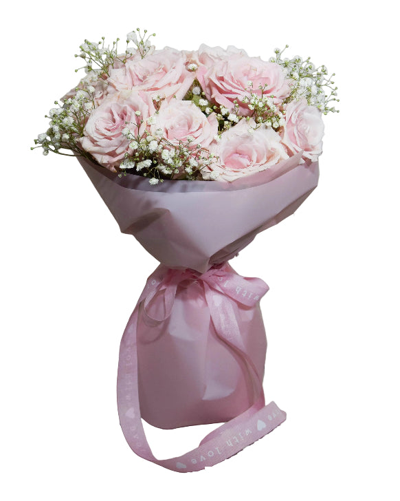 Kompozycja pudrowych róż z białą gipsówką to wyjątkowy podarunek stworzony z myślą o Walentynkach i najpiękniejszych uczuciach. Subtelny odcień pudrowego różu symbolizuje czułość, romantyzm i szczerość emocji, a lekka, śnieżnobiała gipsówka dodaje kompozycji delikatności i elegancji.